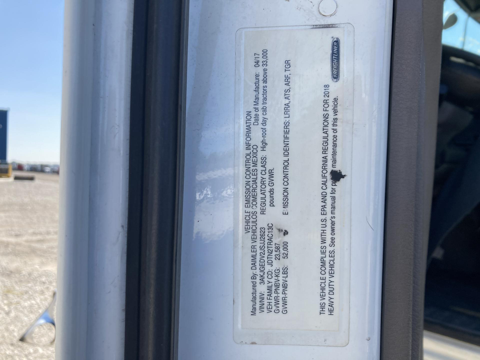 | Vehicle Info: | 2018 Freightliner CASCADIA |