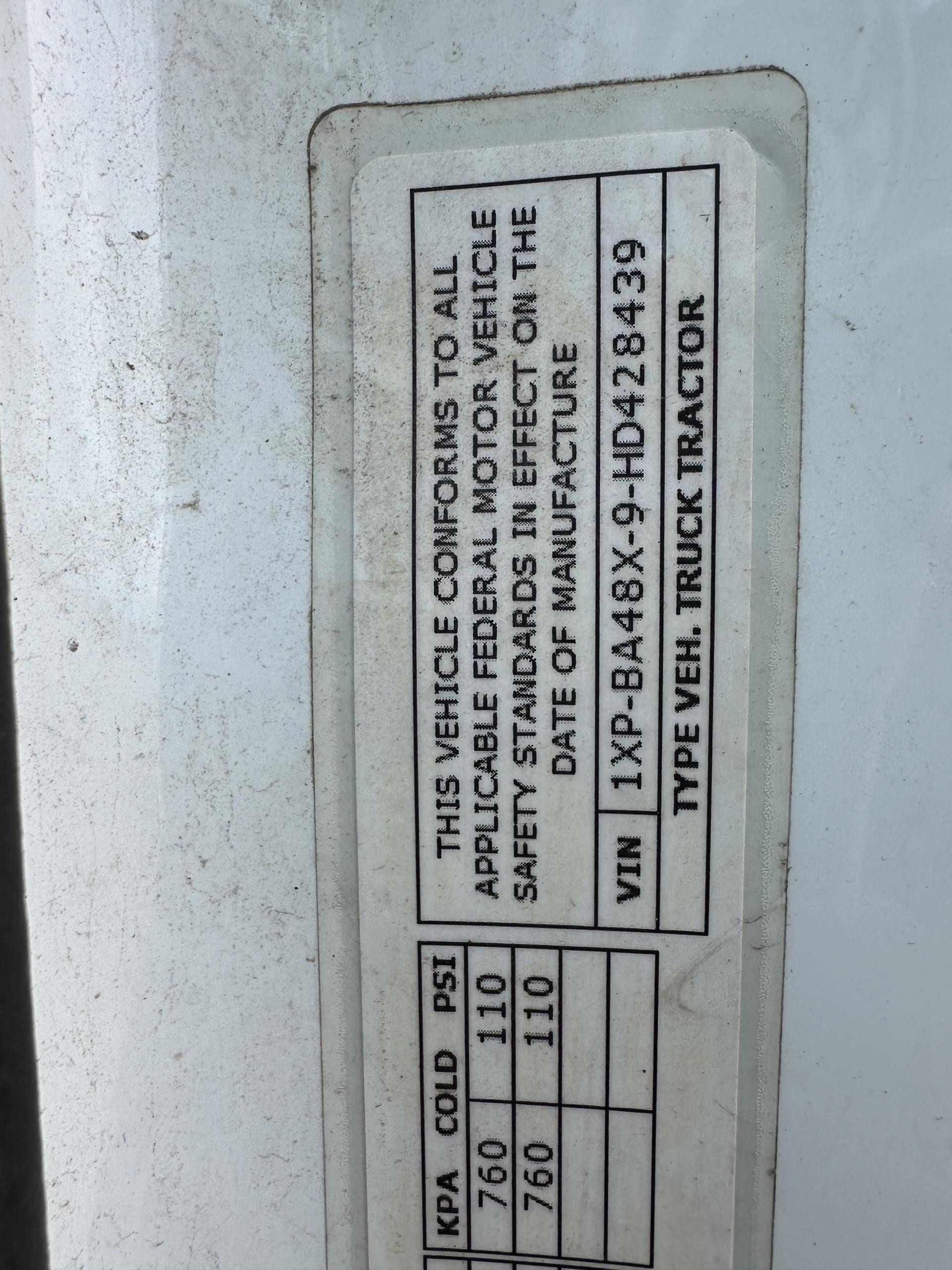 | VIN: | 1XPBA48X9HD428439 |