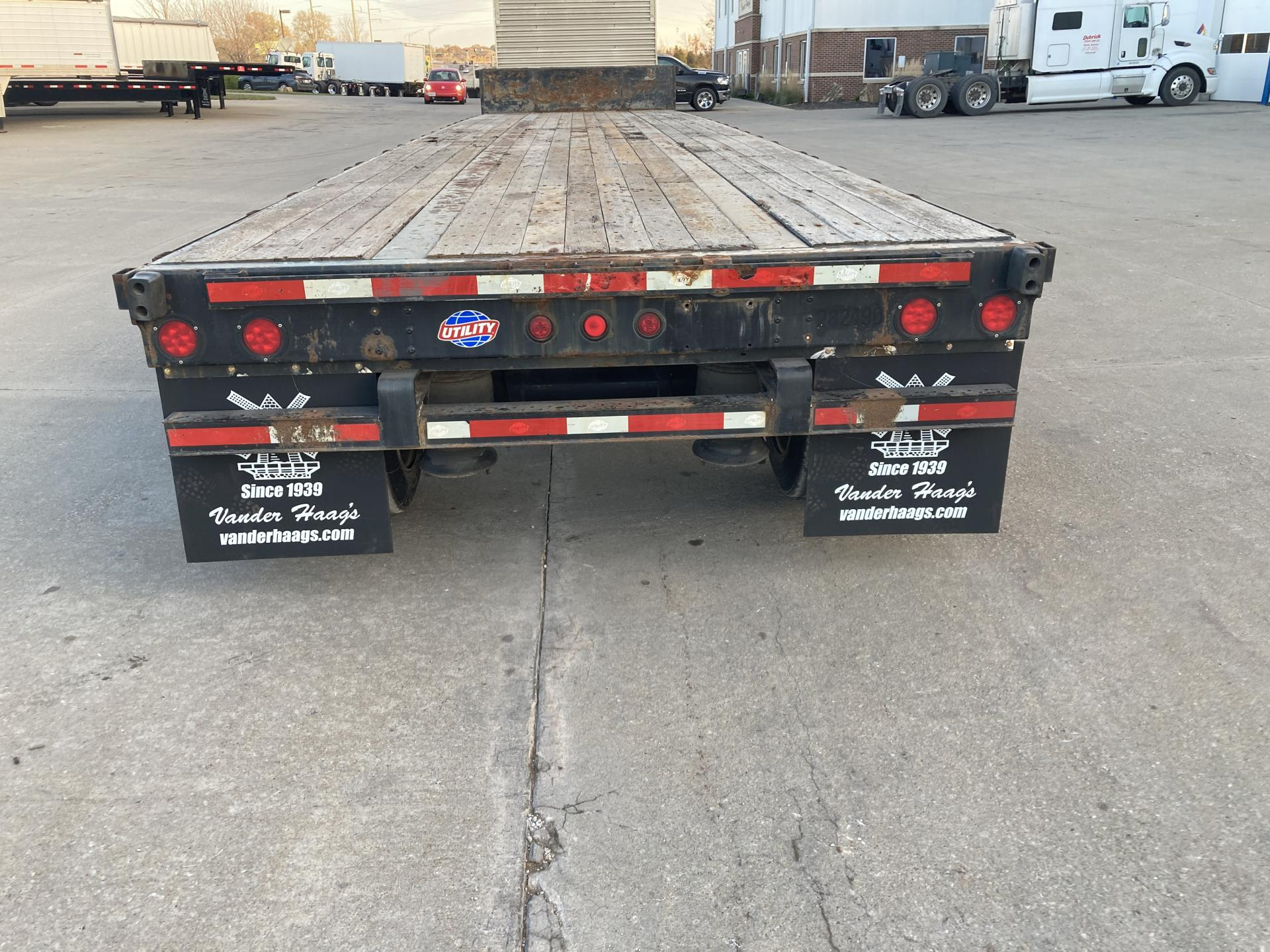 E-Track | 2020 Utility 48'x102" Steel Tandem Axle Drop Deck Trailer, 42" Side Height, 73,000 GVW, 23" Pin, Vin Plate, Air Ride Suspension, Air Brakes 50%, 255/70R22.5 Tires (8/32), Steel Wheels, Bulkhead, Toolbox, Wood Floor, Steel Frame, 18 Winches