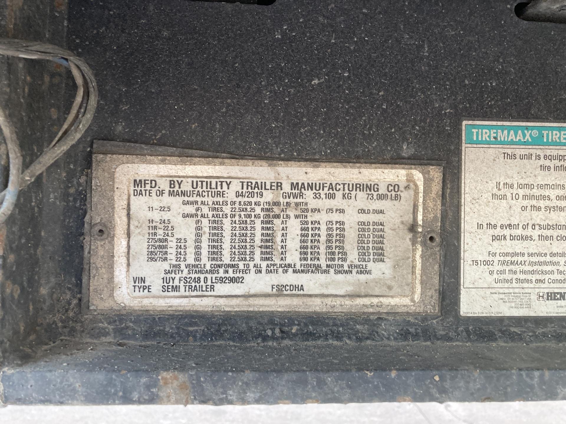 Tool Boxes | 2019 Utility 53'x102" Food Grade Dry Van Trailer, Air Ride Suspension, Sliding Tandem Axle, 68,000 GVW, 36" Pin, Brakes 50%, 11R22.5 Tires, Aluminum Outer Wheels, Swing Door, Solid Roof, Wood Floor, E-Track, Side Skirt