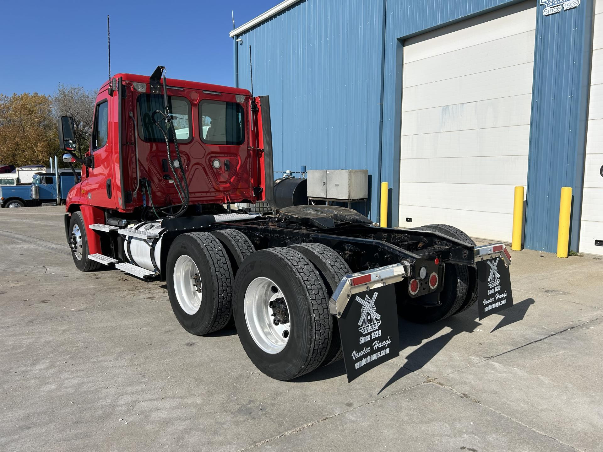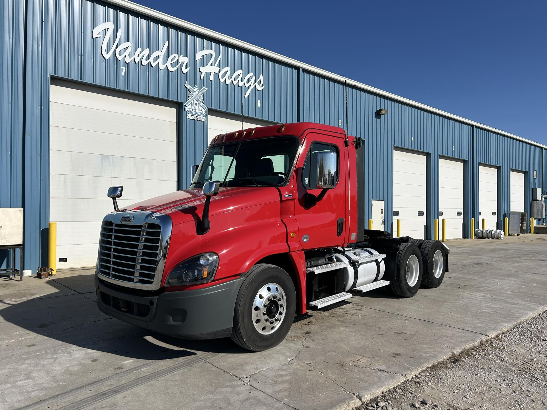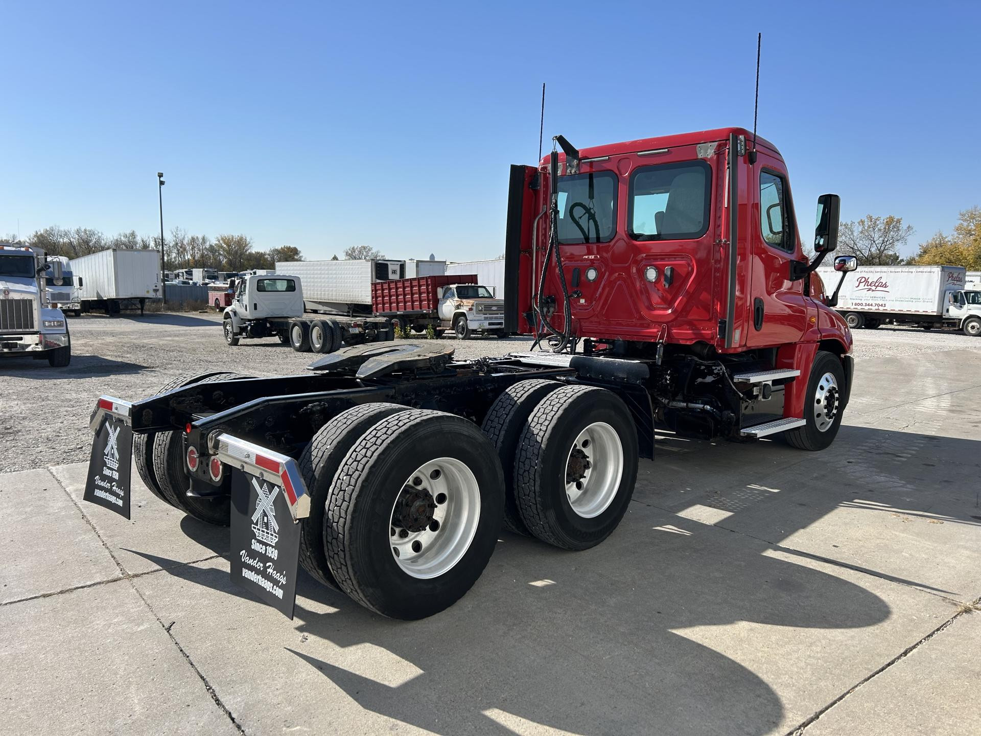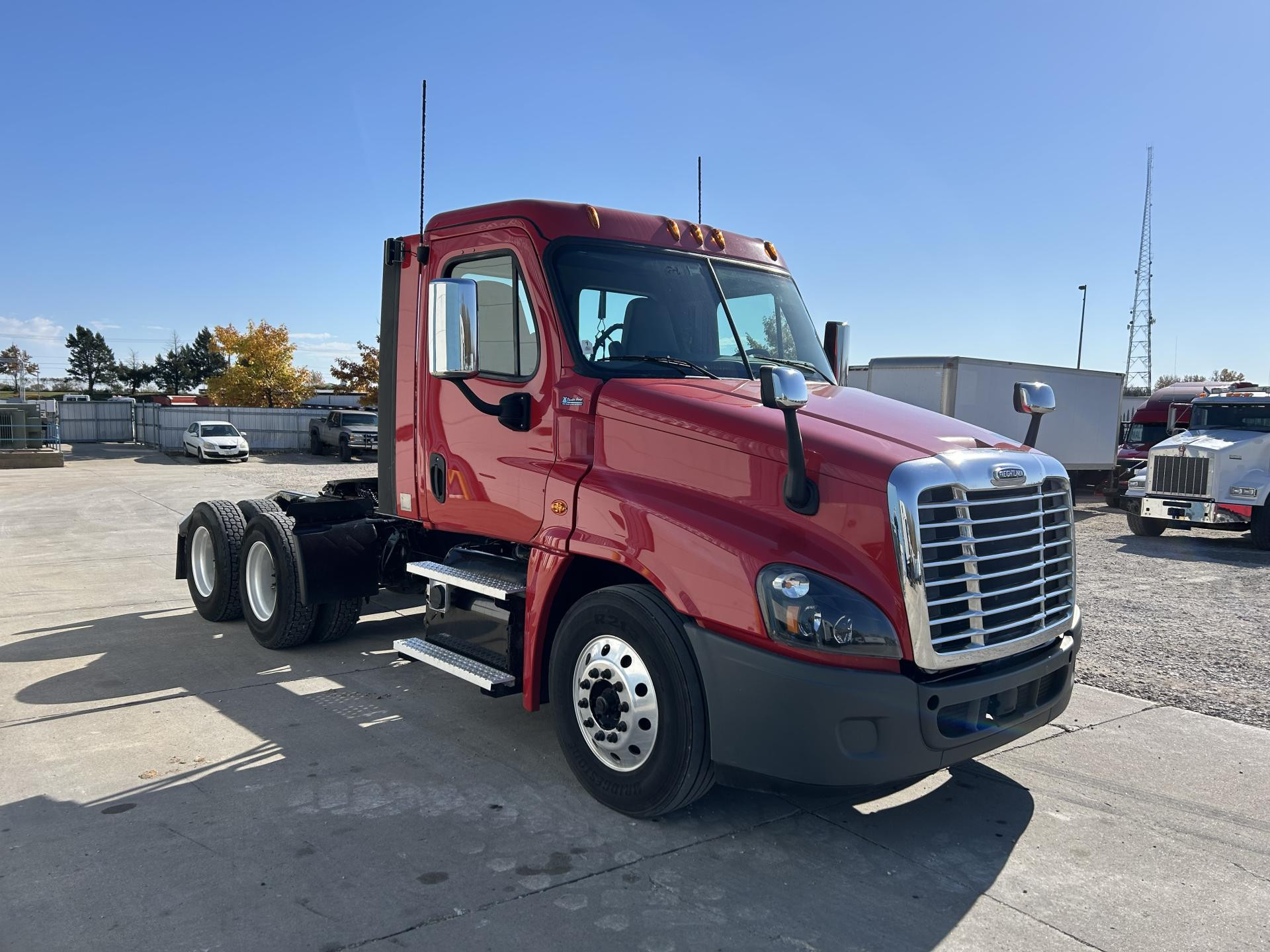 2013 Freightliner Cascadia 113 Single Axle Day Cab, Detroit DD13 370HP Engine, Automatic 6 Spd Allison 3000 HS Transmission, Air Ride Suspension, 35,000 GVW, 12,000# da-f-12 Front Axle, 23,000# Rear Axle, 3.91 Ratio, 158" Wheelbase (CA/CT-94" EOF-129"), 295/75R22.5 Tires (Front: 8/32 - Rear: 19/32), Steel Wheels, 100/100/ Aluminum Fuel Tanks, Air Brakes 25%, 5th-Wheel Stationary, AC, Cruise, Engine Brake, Power Steering Power Windows, Tilting & Telescoping, Heated/Power Mirror | 2017 Freightliner Cascadia 113 Day Cab, Detroit DD13 380HP Engine, DT12 12 Spd Detroit DT12-OB Transmission, Single Axle, Air Ride Suspension, 33,000 GVW, 12,000# MFS-12 Front Axle, 23,000# Meritor RS23160 Rear Axle, 3.42 Ratio, 158" Wheelbase (CA/CT-100" EOF-130"), 275/80R22.5 Tires (Front: 12/32 - Rear: 9/32), Air Brakes 75%, Aluminum 70/70 Fuel Tanks, Cruise, AC, Engine Brake, 5-th Wheel Stationary, Power Windows, Power Steering, Tilting & Telescoping, Heated/Power Mirror, Air Ride/Fixed Seats | 2019 Freightliner Cascadia, Detroit DD13 450HP Engine, Advantage Auto 10 Spd Fuller FAO16810C-EA3 Transmission, Air Ride Suspension, 52,500 GVW, 12,500# AX497899 Front Axle, 40,000# Meritor MD2014X Rear Axle, 3.25 Ratio, 180" Wheelbase (CA/CT-105" EOF-160"), Front Tires: 295/75R22.5 (12/32) - Rear Tires: 445/50R22.5 (10/32), Aluminum/ Steel Wheels, 100 gal. Aluminum Fuel Tank, AC, Cruise, Air Slide 5th- Wheel, Power Locks, Power Windows, Power Steering, Tilting, Power Mirror, Air Ride/Fixed Seats | 2018 Freightliner Cascadia 125 Tandem Axle Day Cab, Detroit DD13 450HP Engine, DT12 12 Spd Detroit DT12-OA Transmission, 52,000 GVW, 12,000# MFS-12-143A Front Axle, 40,000# Meritor MD2014X Rear Axle, 3.08 Ratio, 178" Wheelbase (CA/CT-102" EOF-160"), 295/75R22.5 Tires (Front: 16/32 - Rear: 14/32), Steel Wheels, Aluminum 80/80 Fuel Tanks, Air Brakes 75%, AC, Cruise, Engine Brake, 5th-Wheel Air Slide, Power Locks, Power Windows, Power Steering, Tilting & Telescoping, Air Ride/Fixed Seats, Heated/Power Mirror | 2022 Freightliner Cascadia, Detroit DD13 410HP Engine, DT12 12 Spd Detroit DT12-OB Transmission, Air RIde Suspension, 52,000 GVW, 12,000# MFS-12 Front Axle, 40,000# Meritor MD2014X Rear Axle, 2.85 Ratio, 178" Wheelbase, 295/75R22.5 Tires (Front: 18/32 - Rear: 14/32), Steel Wheels, Aluminum 70/70 Fuel Tanks, Disc Brakes 50%, AC, Cruise, Engine Brake, 5th-Wheel Stationary, Power Locks, Power Windows, Power Steering, Tilting & Telescoping, Heated/Power Mirror |