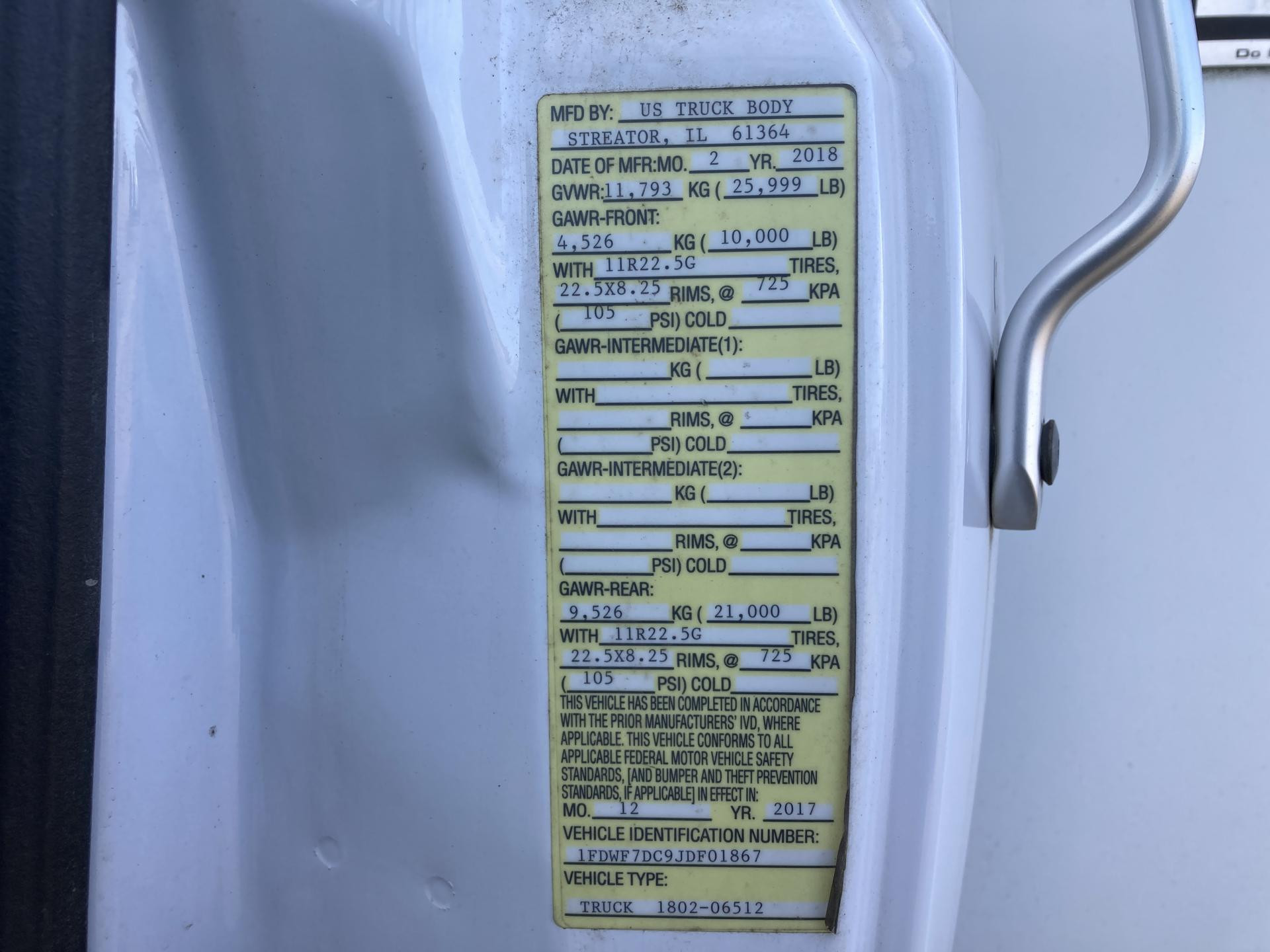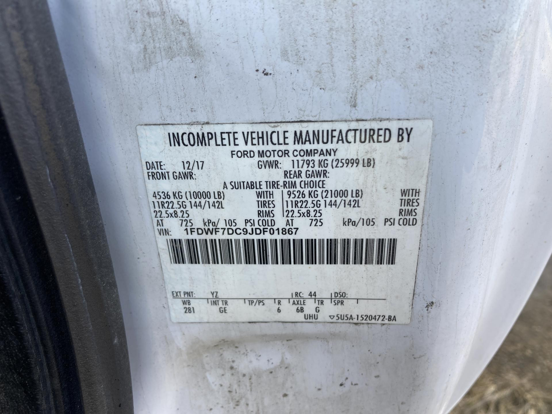 | VIN: | 1FDWF7DC9JDF01867 |