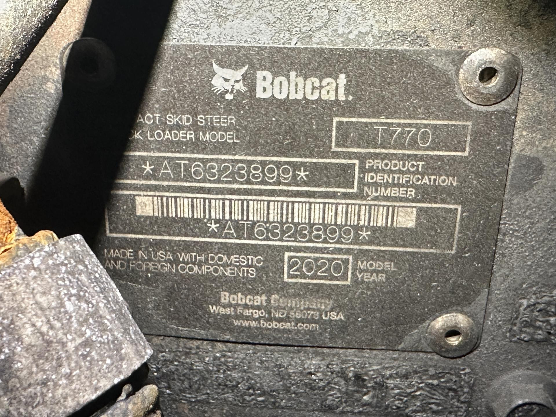 | Vehicle Info: | 2020 Bobcat T770 |