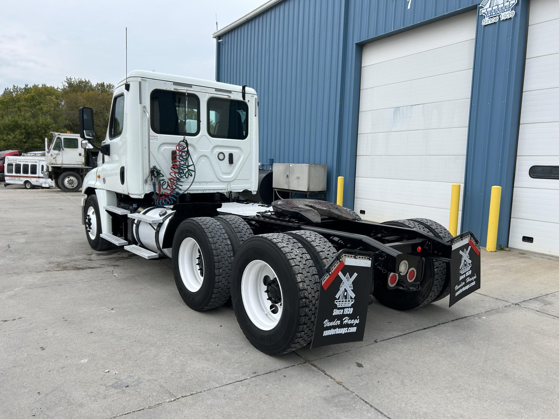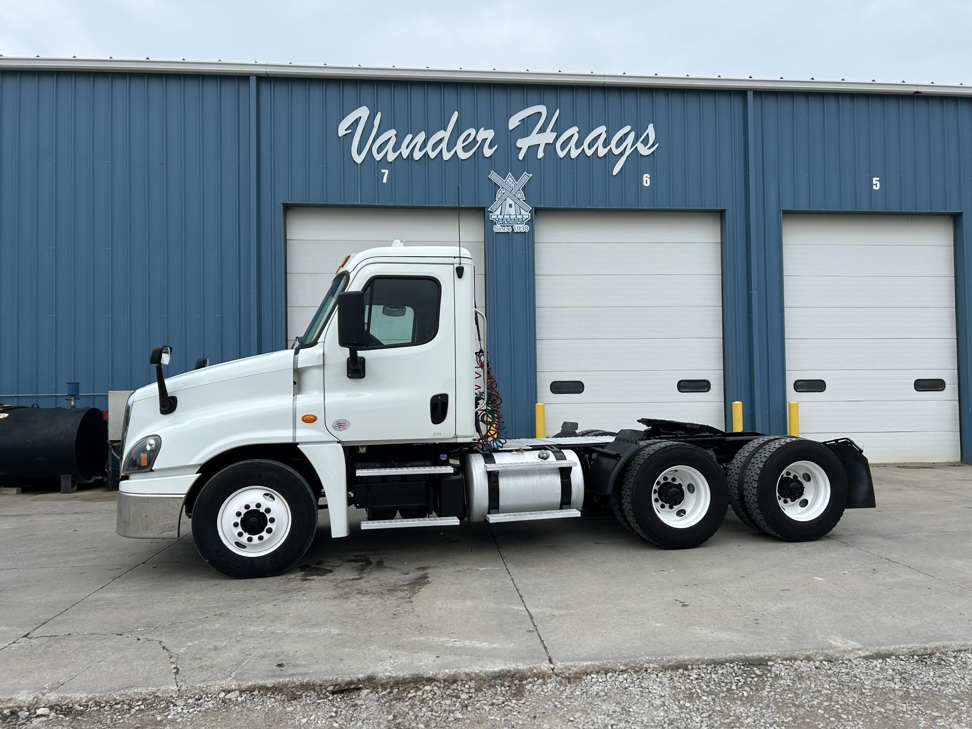 2013 Freightliner Cascadia 113 Single Axle Day Cab, Detroit DD13 370HP Engine, Automatic 6 Spd Allison 3000 HS Transmission, Air Ride Suspension, 35,000 GVW, 12,000# da-f-12 Front Axle, 23,000# Rear Axle, 3.91 Ratio, 158" Wheelbase (CA/CT-94" EOF-129"), 295/75R22.5 Tires (Front: 8/32 - Rear: 19/32), Steel Wheels, 100/100/ Aluminum Fuel Tanks, Air Brakes 25%, 5th-Wheel Stationary, AC, Cruise, Engine Brake, Power Steering Power Windows, Tilting & Telescoping, Heated/Power Mirror | 2017 Freightliner Cascadia 113 Day Cab, Detroit DD13 380HP Engine, DT12 12 Spd Detroit DT12-OB Transmission, Single Axle, Air Ride Suspension, 33,000 GVW, 12,000# MFS-12 Front Axle, 23,000# Meritor RS23160 Rear Axle, 3.42 Ratio, 158" Wheelbase (CA/CT-100" EOF-130"), 275/80R22.5 Tires (Front: 12/32 - Rear: 9/32), Air Brakes 75%, Aluminum 70/70 Fuel Tanks, Cruise, AC, Engine Brake, 5-th Wheel Stationary, Power Windows, Power Steering, Tilting & Telescoping, Heated/Power Mirror, Air Ride/Fixed Seats | 2019 Freightliner Cascadia, Detroit DD13 450HP Engine, Advantage Auto 10 Spd Fuller FAO16810C-EA3 Transmission, Air Ride Suspension, 52,500 GVW, 12,500# AX497899 Front Axle, 40,000# Meritor MD2014X Rear Axle, 3.25 Ratio, 180" Wheelbase (CA/CT-105" EOF-160"), Front Tires: 295/75R22.5 (12/32) - Rear Tires: 445/50R22.5 (10/32), Aluminum/ Steel Wheels, 100 gal. Aluminum Fuel Tank, AC, Cruise, Air Slide 5th- Wheel, Power Locks, Power Windows, Power Steering, Tilting, Power Mirror, Air Ride/Fixed Seats | 2018 Freightliner Cascadia 125 Tandem Axle Day Cab, Detroit DD13 450HP Engine, DT12 12 Spd Detroit DT12-OA Transmission, 52,000 GVW, 12,000# MFS-12-143A Front Axle, 40,000# Meritor MD2014X Rear Axle, 3.08 Ratio, 178" Wheelbase (CA/CT-102" EOF-160"), 295/75R22.5 Tires (Front: 16/32 - Rear: 14/32), Steel Wheels, Aluminum 80/80 Fuel Tanks, Air Brakes 75%, AC, Cruise, Engine Brake, 5th-Wheel Air Slide, Power Locks, Power Windows, Power Steering, Tilting & Telescoping, Air Ride/Fixed Seats, Heated/Power Mirror | 2022 Freightliner Cascadia, Detroit DD13 410HP Engine, DT12 12 Spd Detroit DT12-OB Transmission, Air RIde Suspension, 52,000 GVW, 12,000# MFS-12 Front Axle, 40,000# Meritor MD2014X Rear Axle, 2.85 Ratio, 178" Wheelbase, 295/75R22.5 Tires (Front: 18/32 - Rear: 14/32), Steel Wheels, Aluminum 70/70 Fuel Tanks, Disc Brakes 50%, AC, Cruise, Engine Brake, 5th-Wheel Stationary, Power Locks, Power Windows, Power Steering, Tilting & Telescoping, Heated/Power Mirror |