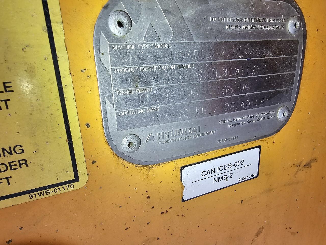 | Vehicle Info: | 2020 Hyundai HL940XT |