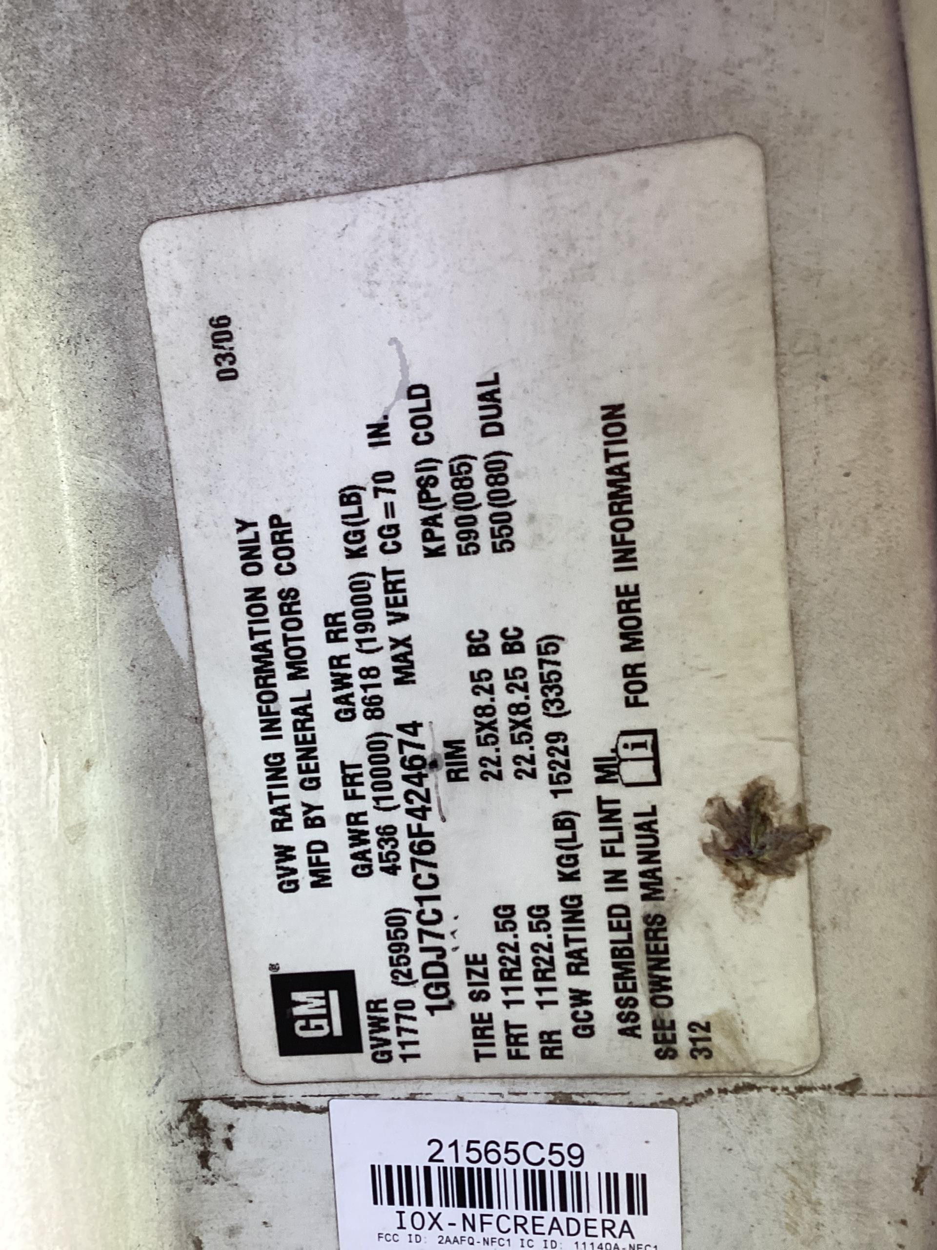 | Vehicle Info: | 2006 GMC C7500 |