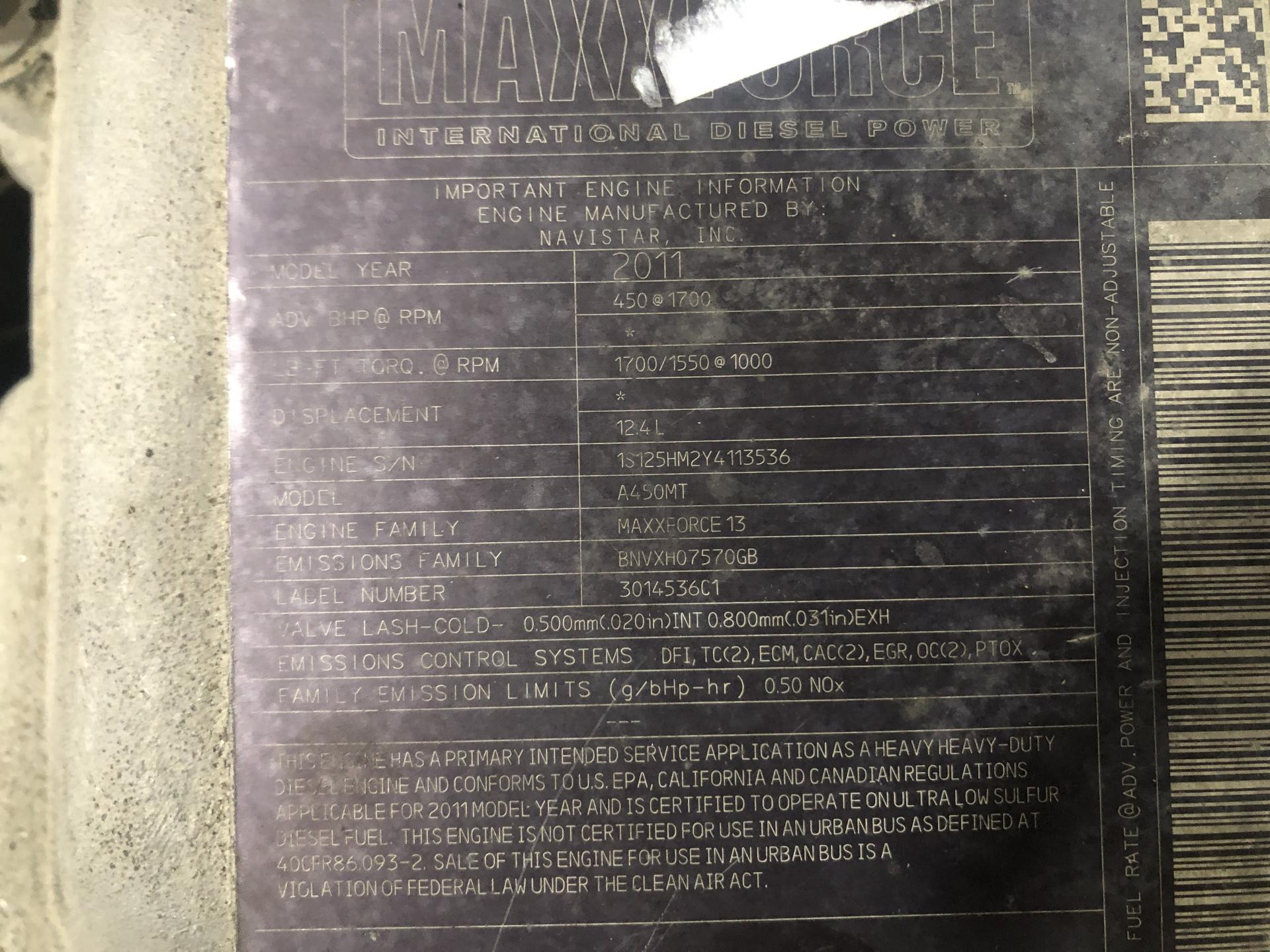 | Vehicle Info: | 2012 International PROSTAR |